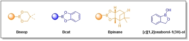 Organobotonates including Bneops, Bcats, Bpinanes as well as [c][1,2]oxaborol-1(3H)-ols have a small number and a large variety compared to Bpins and boronic acids.