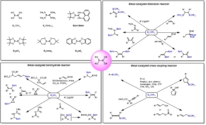 Diborons have been widely concerned in the field of organic chemistry due to their advantages such as good stability, easy storage, low cost and easy availability, especially in the borylation reaction catalyzed by transition metals.
