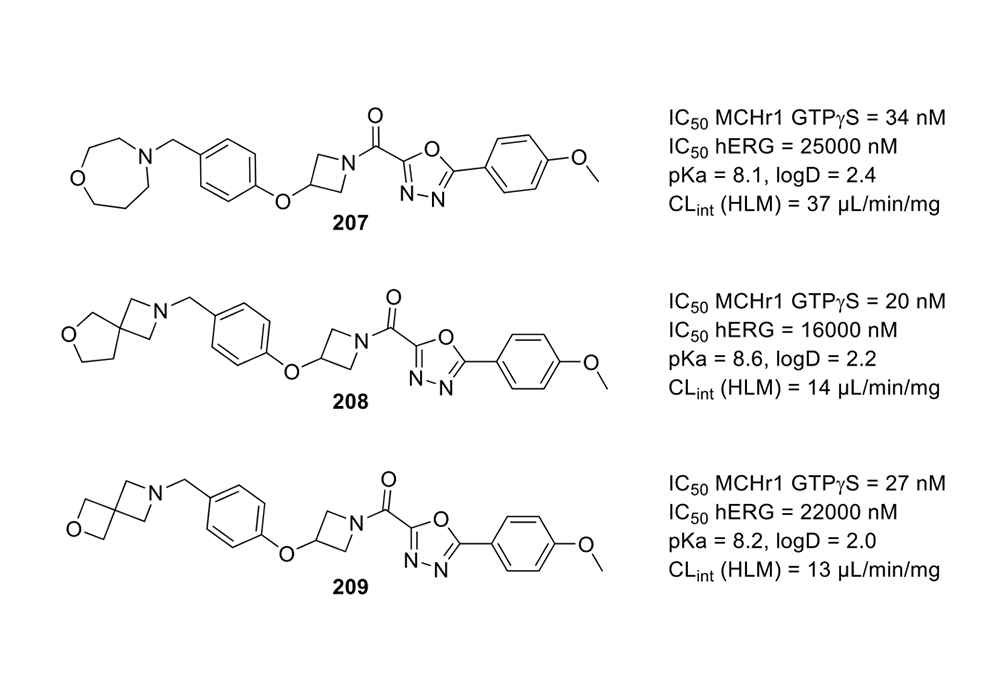 [3]Johansson, A., Lofberg, C., Antonsson, M., von Unge, S., Hayes, M.A., Judkins, R., Ploj, K., Benthem, L., Linden, D., Brodin, P., et al. (2016). Discovery of (3-(4-(2-Oxa-6-azaspiro[3.3]heptan-6-ylmethyl)phenoxy)azetidin-1-yl)(5-(4-methoxy phenyl)-1,3,4-oxadiazol-2-yl)methanone (AZD1979), a Melanin Concentrating Hormone Receptor 1 (MCHr1) Antagonist with Favorable Physicochemical Properties. J Med Chem 59, 2497-2511.