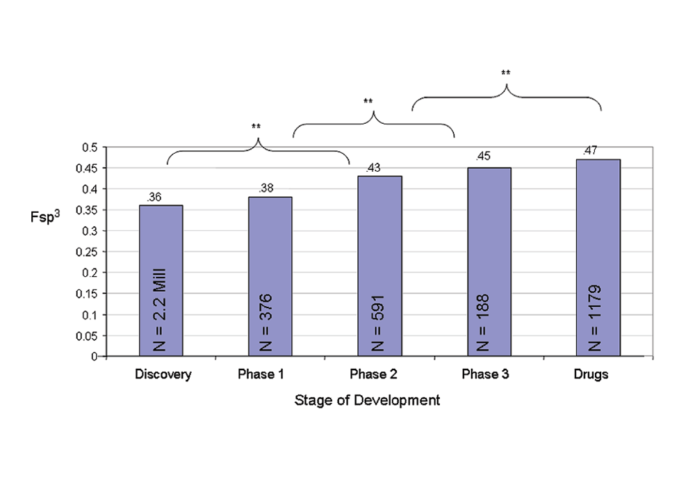[4]Lovering, F., Bikker, J., and Humblet, C. (2009). Escape from flatland: increasing saturation as an approach to improving clinical success. J Med Chem 52, 6752-6756.