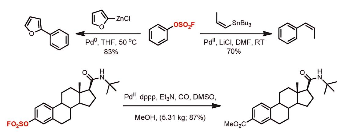 Aromatic sulfonyl fluoride compounds can participate in transition metal-catalyzed coupling reactions. Research by Bristol-Myers Squibb (BMS) [2] has shown that sulfonyl fluorides act as electrophiles in Negishi and Stille cross-coupling reactions, as well as palladium-catalyzed carbonylation reactions. The Joseph Moran group reported the use of sulfonyl fluorides as electrophiles in Suzuki coupling reactions [3], enabling C-C bond formation without a base and under strongly acidic conditions.