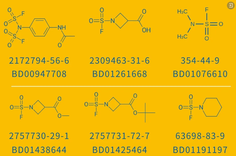 Offering a diverse collection of over 1000 sulfonyl fluoride compounds, including aryl sulfonyl fluorides, alkyl sulfonyl fluorides, sulfonyl fluoride esters, and amino sulfonyl fluorides. Custom synthesis services are also available.