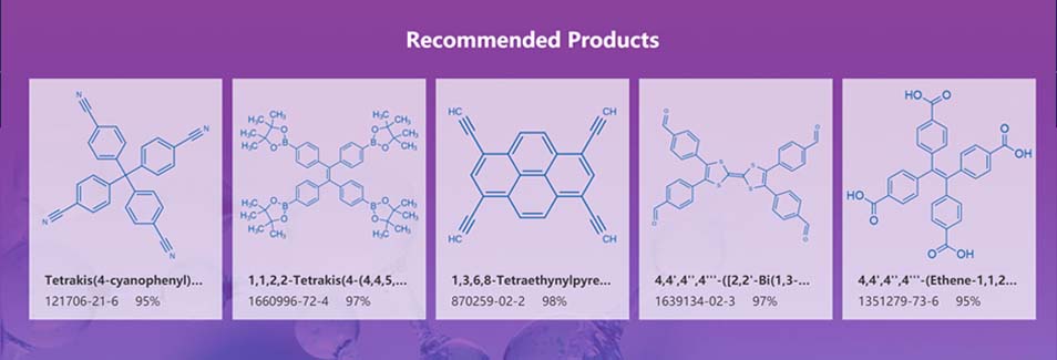 We've launched a series of new products, like tetraphenyl ethylene derivatives, organic photoelectronic materials and so on. The Recommended Products section will regularly present star products for your convenience to choose from.