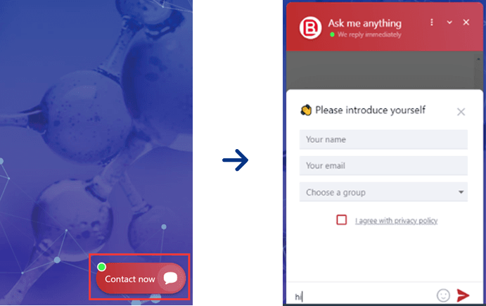To get immediate help from our customer service team – the foldable chatbox always shows in the lower right corner.
