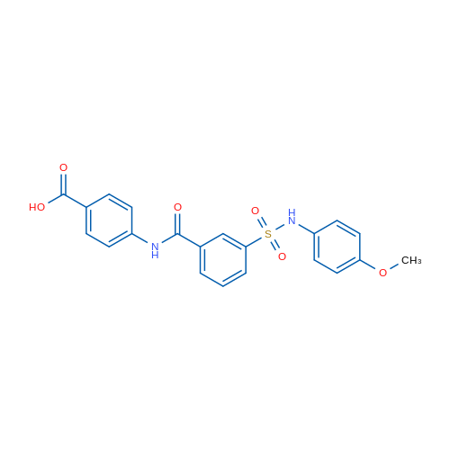 | SMILES Code: | O=C(O)C1=CC=C(NC(C2=CC=CC(S(=O)(NC3=CC=C(OC)C=C3)=O)=C2)=O)C=C1 | ||